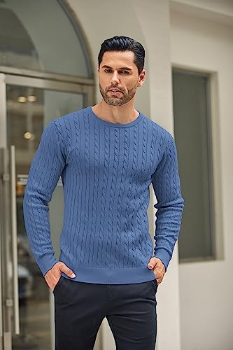 COOFANDY Men’s Crew Neck Jumper Cable Knitted Lightweight Jumper Slim Fit Long Sleeve Casual Pullover Sweater