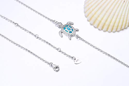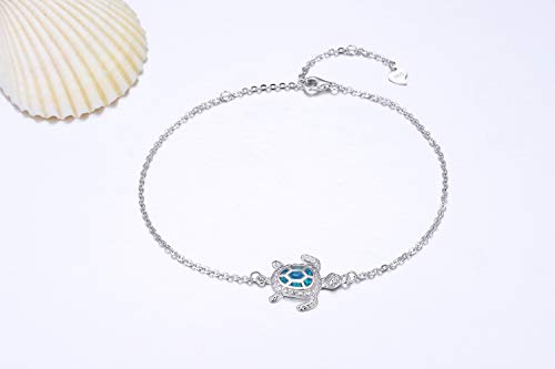 Blue Opal Sea Turtle Anklet/Bracelet/Necklace/Earrings, Sterling Silver Ankle Bracelet Jewelry For Women Gifts New Version 4 Level Adjustable